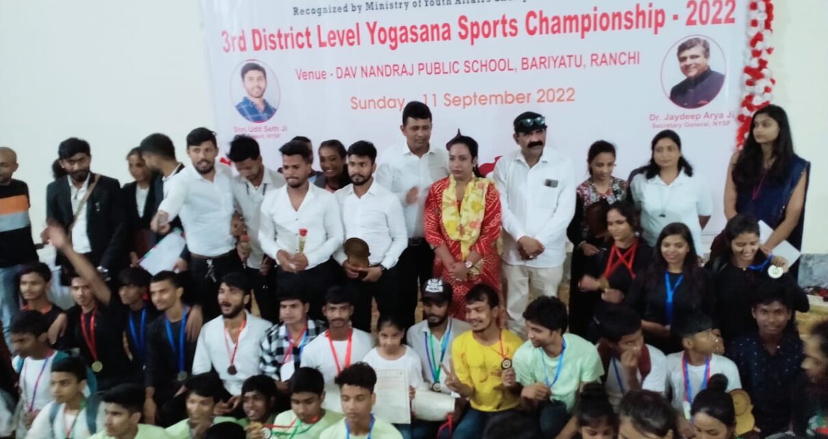 राची,झारखण्ड | सितंबर | 12, 2022 :: तृतीय रांची जिला योगासन स्पोर्ट्स चैम्पियनशीप रविवार को डी ए वी नंदराज स्कूल में हुआ सम्पन हुआ जिसमे लगभग तीन सौ प्रतिभागी अलग -अलग स्कूल, संस्थान से भाग लिए, जिसमे नटराज योग संस्थान से भाग लेने वाले 18 प्रतिभागियों का राज्यस्तरीय प्रतियोगिता के लिए चयन हुआ,