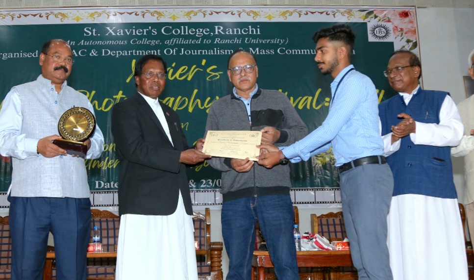 संत जेवियर्स कॉलेज में जर्नलिज्म एवं मास कम्युनिकेशन विभाग और आई.क्यू.ए.सी के संयुक्त फोटो पत्रकारिता पर आधारित दो दिवसीय “झारखण्ड : प्रकृति का रंगमंच – कैमरे की नजर से” विषय पर “स्प्रिंग फोटोग्राफी फेस्टिवल 2024” आयोजित की गयी| फोटो फेस्टिवल का उद्घाटन प्राचार्य डॉ. फ़ादर नाबोर लकड़ा ने उपस्थित अतिथियों के साथ दीप प्रज्ज्वलन कर किया|