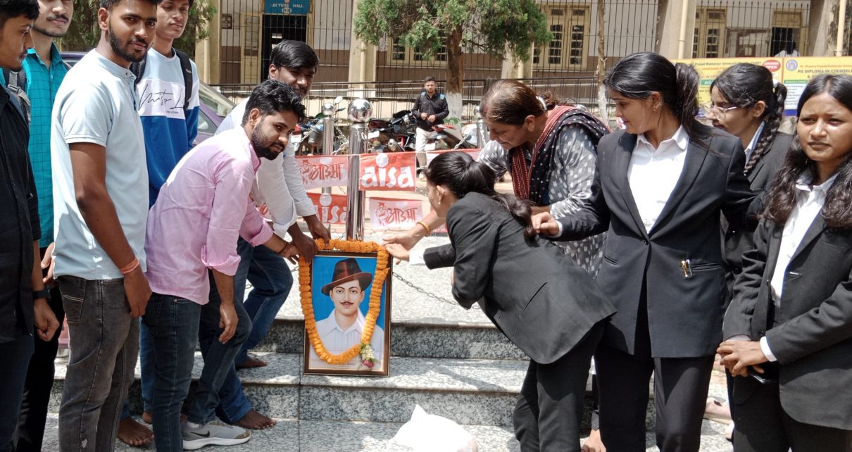 रांची कॉलेज में ऑल इंडिया स्टूडेंट्स एसोसिएशन (आइसा) के द्वारा शहीद-ए-आजम भगत सिंह की 117वीं जयंती के मनाई गई। कार्यक्रम का उद्देश्य भगत सिंह के विचारों और उनके बलिदान को याद करना, साथ ही छात्रों के बीच उनकी प्रेरणादायक विचारधारा को प्रसारित करना था।