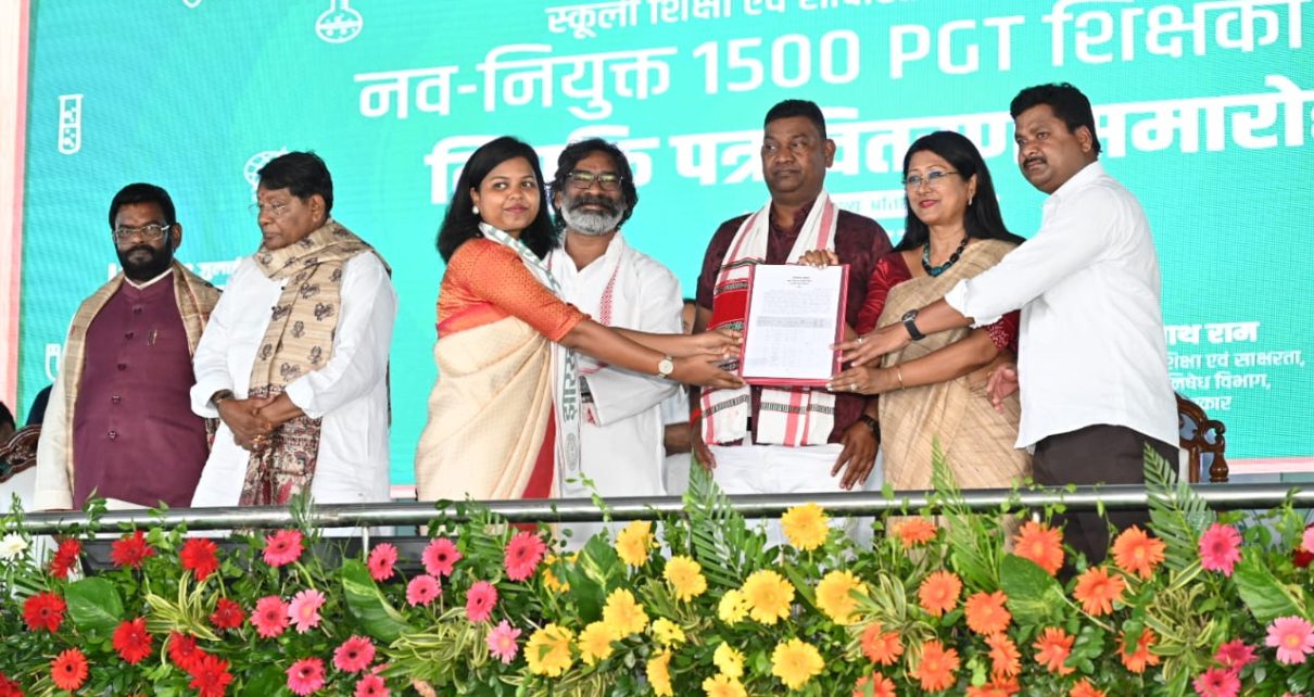 मुख्यमंत्री हेमन्त सोरेन के हाथों 1500 नवनियुक्त शिक्षकों को नियुक्ति पत्र मिला तो सभी के चेहरे खुशी से दमक उठे। मौका था स्नातकोत्तर प्रशिक्षित शिक्षकों के बीच नियुक्ति पत्र वितरण समारोह का । मुख्यमंत्री ने शिक्षकों से कहा कि आपके ऊपर बच्चों के भविष्य निर्माण की बहुत बड़ी जिम्मेदारी है। मुझे पूरा भरोसा है कि आप निष्ठा एवं ईमानदारी के साथ अपने दायित्वों का निर्वहन करते हुए राज्य के सर्वांगीण विकास में योगदान देंगे।