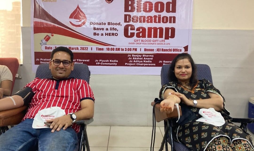 रक्तदान शिविर को सफल बनाने में जेसीआई रांची के अध्यक्ष सौरव साह, सचिव प्रतीक जैन, अनंत जैन, पंकज साबू,राहुल टिबरेवाल, संकेत सरावगी,शीतल शर्मा, नीमा मसकारा ने अहम भूमिका निभाई।