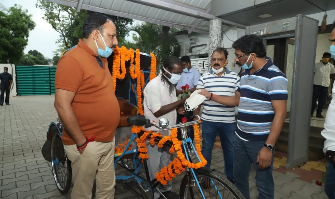 रांची के सेंट जेवियर्स कॉलेज के पास रहने वाले राजकुमार रविदास का रिक्शा कुछ दिनों पहले चोरी हो गया था. ऐसे में वह कबाड़ी का काम कर किसी तरह परिवार चला रहा था. लेकिन, लॉकडाउन में उसके पास कमाने-खाने का कोई जरिया नहीं था. पेयजल एवं स्वच्छता मंत्री श्री मिथिलेश ठाकुर के पास राजकुमार रविदास का मामला आया तो उन्होंने तत्काल संज्ञान लेते हुए अपने स्तर पर नए रिक्शा की व्यवस्था करते हुए मुख्यमंत्री के कर-कमलों से उसे सौंपा.