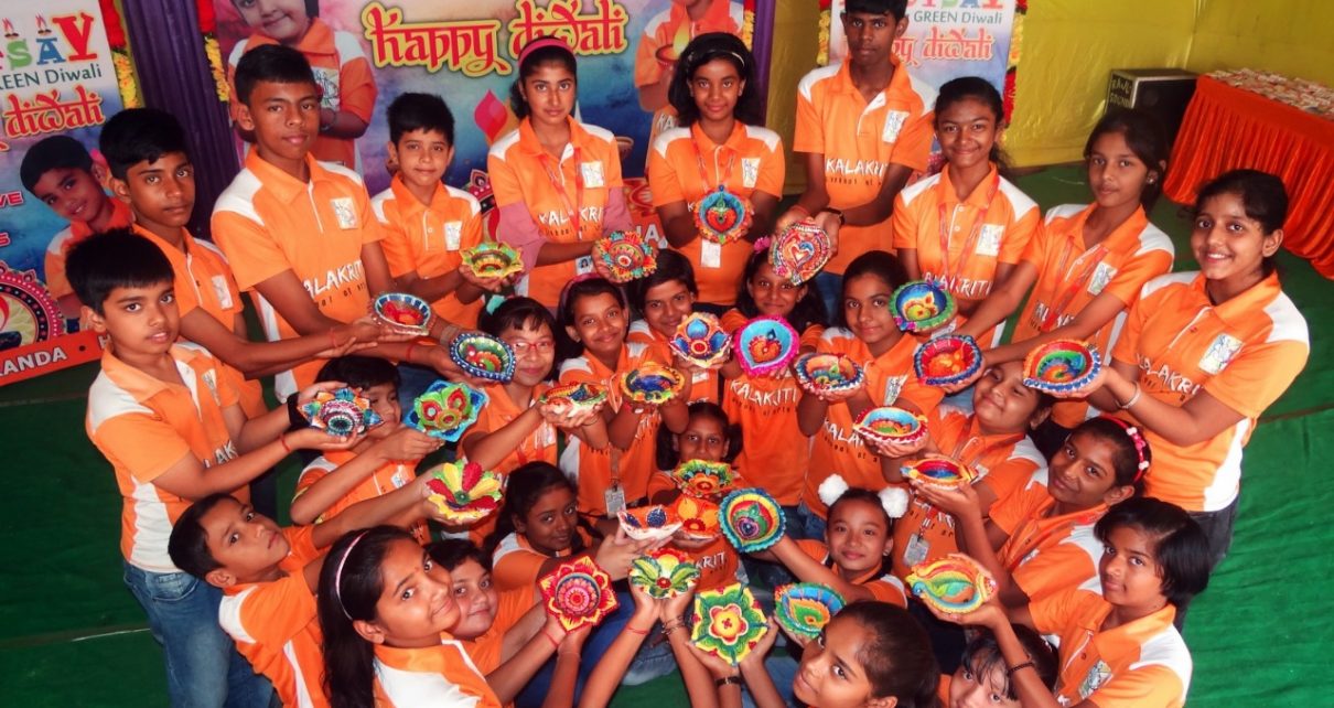 कलाकृति के शिक्षकों के द्वारा बच्चों दीपावली के अवसर पर सजाने वाले विविन्न कलात्मक चीजों को बनाने की कला सिखाई | बच्चों ने इस अवसर पर सुंदर सुंदर रंगोली बना कर अपनी कला प्रदर्शित की | सभी छात्रों ने प्रकाश पर्व पर दिवाली उत्सव को प्रदुषण मुक्त रखने के लिए पटाखे नहीं जलने का संकल्प लिया| संस्था के तरफ से सभी बच्चों को उपहार स्वरूप मिट्टी के दीये भेंट किये गये | सभी ने स्काई लैंटर्न जला के दीपावली का स्वागत किया |
