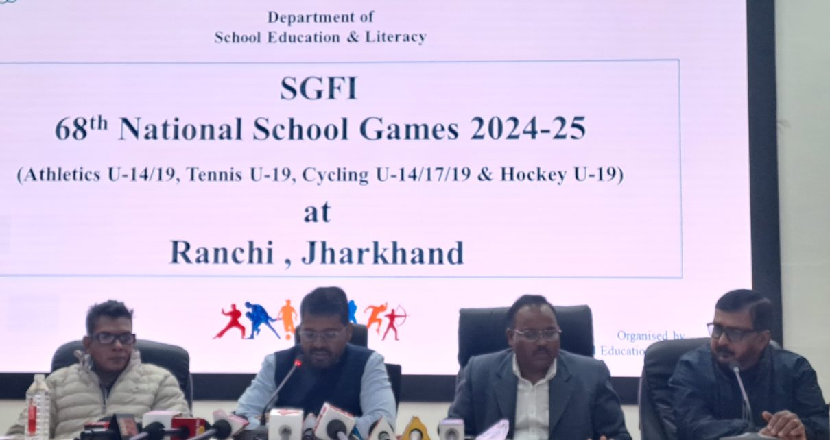 68वी राष्ट्रीय स्कूल खेल प्रतियोगिता की मेजबानी को लेकर आज झारखंड शिक्षा परियोजना परिषद के प्रेक्षागृह में राज्य शिक्षा परियोजना निदेशक शशि रंजन ने प्रेस वार्ता की। इस दौरान जेईपीसी के प्रशासनिक पदाधिकारी सच्चिदानंद दि. तिग्गा, राज्य कार्यक्रम पदाधिकारी धीरसेन सोरेंग, झारखंड ओलिंपिक संघ के कोषाध्यक्ष शिवेन्द्रनाथ दुबे उपस्थित थे। इस दौरान पत्रकारों को खेल आयोजन के संबंध में विस्तृत जानकारी दी गयी। राज्य शिक्षा परियोजना निदेशक आदित्य रंजन ने आयोजन की सफलता में पत्रकारों की भूमिका को अतुलनीय बताया। उन्होंने कहा कि दिनांक 5 जनवरी को शाम 4 बजे मोरहाबादी स्थित भगवान बिरसा मुंडा फुटबॉल स्टेडियम में माननीय शिक्षा मंत्री रामदास सोरेन द्वारा खेल प्रतियोगिता का उद्घाटन किया जाएगा। उद्घाटन समारोह में माननीय मंत्री के अलावा विभागीय सचिव उमाशंकर सिंह, खेल निदेशक संदीप कुमार समेत शिक्षा एवं खेल विभाग के अन्य पदाधिकारी और खेल संघो के पदाधिकारी शामिल होंगे। इस आयोजन को लेकर टीमों का रांची आना शुरू हो गया है आज और कल देश की 35 टीमें रांची आ रही है। उनके लिए आवासन और चिकित्सा सेवाओं की व्यवस्था पूरी कर ली गयी है। उन्होंने कहा कि व्यवस्था संभालने के लिए 17 समितियों को जिम्मेदारी दी गयी है। इन समितियों के कार्यो को लगातार मॉनिटर किया जाएगा।