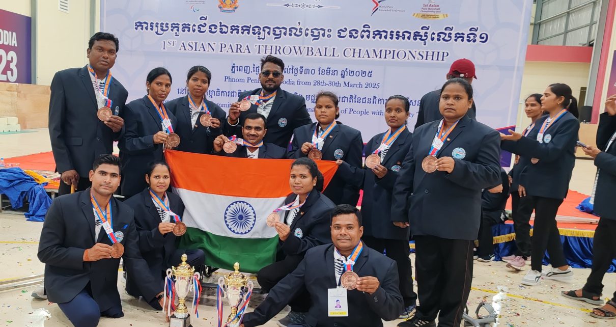 पारा थ्रो बॉल फेडरेशन ऑफ एशिया के तत्वाधान में दिनांक 26 से 30 मार्च 2025 कंबोडिया में आयोजित प्रथम एशियन पारा थ्रो बॉल चैंपियनशिप में भारतीय दल ने कांस्य पदक पर कब्जा जमाया।