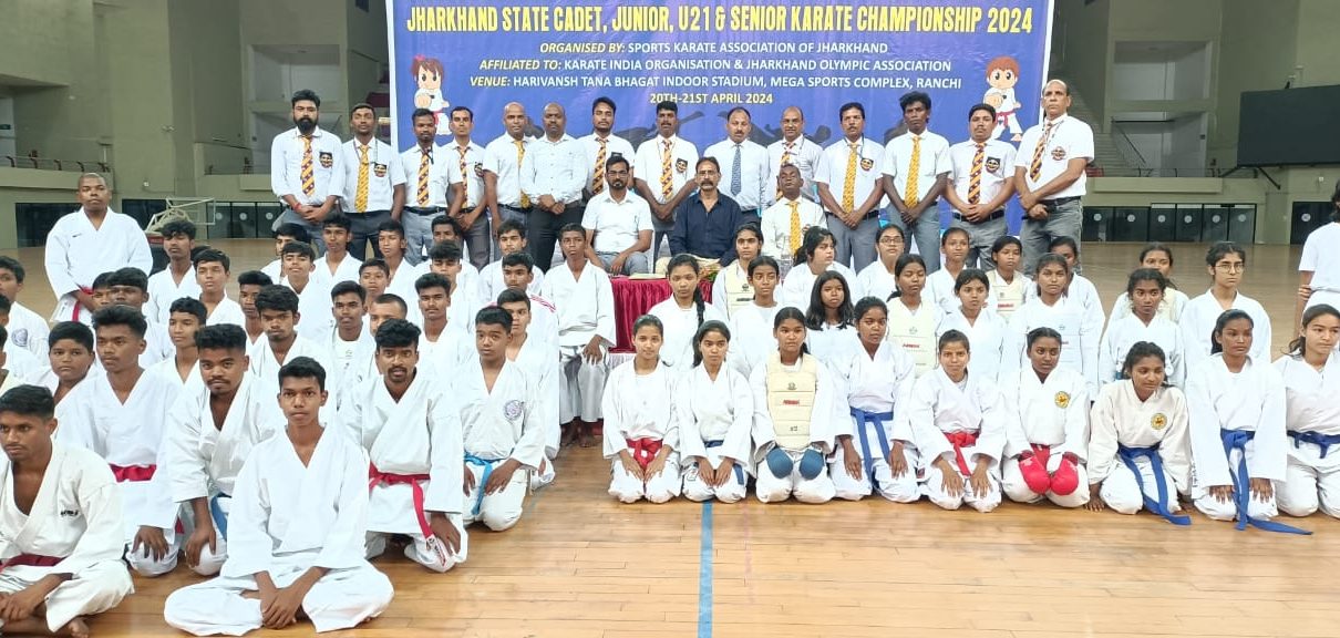 स्पोर्ट्स कराटे एसोसिएशन ऑफ झारखंड द्वारा आज दिनांक 20 अप्रैल से झारखंड स्टेट जूनियर, कैडेट, अंडर 21 एवम् सीनियर कराटे चैंपियनशिप 2024 का आयोजन हरिवंश ताना भगत इंडोर स्टेडियम रांची में किया गया। प्रतियोगिता का उद्धघाटन स्पोर्ट्स कराटे ऐसोसिएशन ऑफ झारखंड के अध्यक्ष हांसी मानस सिन्हा एवम् सचिव सेंसाई हेजाज़ अकसद द्वारा किया गया। इस मौके पर कराटे के विभिन्न स्टाइल झारखंड प्रमुख सेंसाई धनंजय श्रीवास्तव, सेंसाई विनीत कुमार यादव, सेंसाई इबरार कुरैसी, सेंसाई शिवम कुमार, सेंसाई विमल दीप लाल, सेंसाई पंकज सिंह उपस्थित थे। इसके अलावे राष्ट्रीय कोच शिहान रंजीत मेहता, राष्ट्रीय रेफरी कोशी नरेंद्र सिन्हा,शिहान शशि पांडे उपास्थित थे।न्यूज लिखे जाने तक आज के प्रतियोगिता का काता का परिणाम इस प्रकार हैं