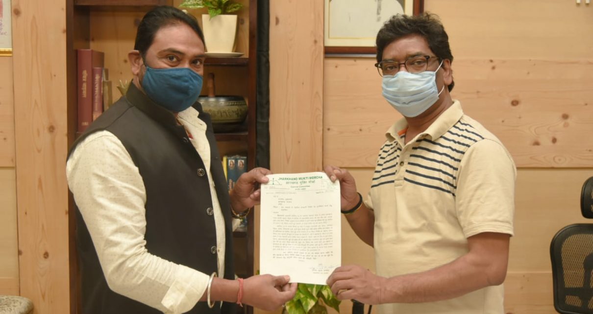 रांची , झारखण्ड | नवम्बर | 16, 2020 :: मुख्यमंत्री श्री हेमन्त सोरेन से आज कांके रोड रांची स्थित मुख्यमंत्री आवास में झारखंड मुक्ति मोर्चा (जेएमएम) के केंद्रीय समिति के महासचिव सह प्रवक्ता श्री विनोद कुमार पांडेय ने मिलकर राज्य सरकार से छठ महापर्व से संबंधित सरकारी निर्देश पर पुनर्विचार करने का अनुरोध किया है।
