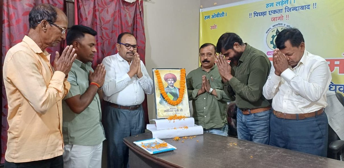 राष्ट्रीय असबाब मोर्चा के प्रदेश कार्यालय में ज्योतिबा फुले की जयंती के अवसर पर उनकी तस्वीर पर उन्हें श्रद्धांजलि अर्पित की गई।