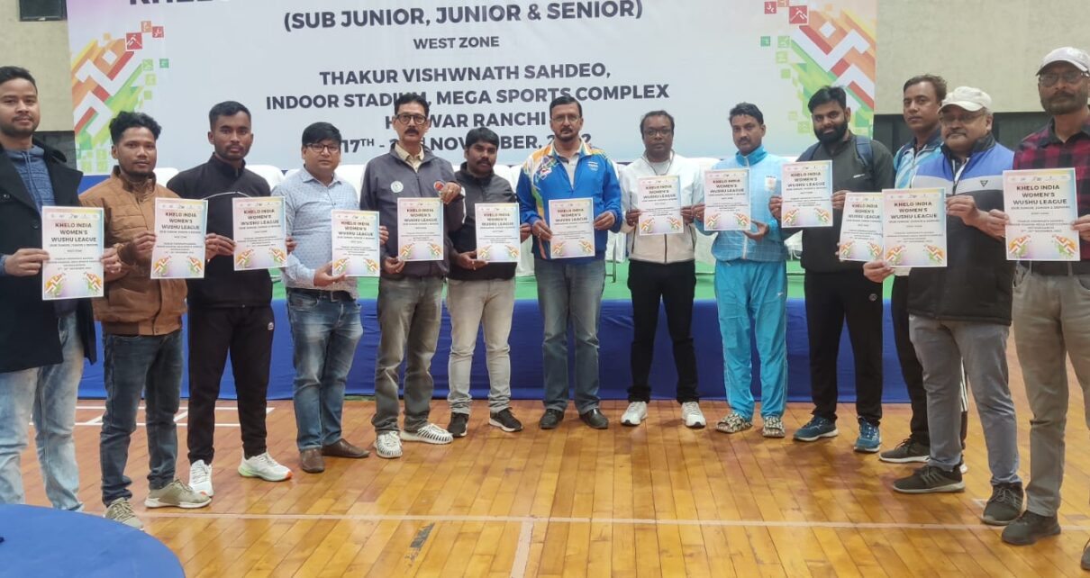 राँची, झारखण्ड | नवम्बर | 16, 2022 :: खेलो इंडिया विमेन वुशु लीग जो कल(17 नवम्बर) से प्रारंभ हो रही है का पोस्टर आज यहाँ ठाकुर विश्वनाथ शाहदेव इंडोर स्टेडियम में रिलीज कर दिया गया।