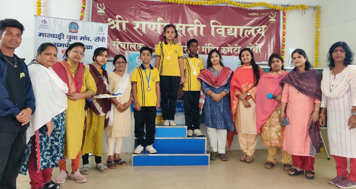 झारखंड प्रांतीय मारवाड़ी युवा मंच के कार्यक्रम “हर बच्चे का स्वस्थ सप्ताह” के पांच दिवसीय कार्यक्रम के तहत तीसरे दिन सुबह 09:30 बजे राणी सती विद्यालय के बच्चों के साथ खेल – कूद का आयोजन किया। जिसमें बोरा दौड़, किताब नियंत्रण दौड़ और चमच्च – अंटा दौड़ की प्रतियोगिता हुई , जिसमें विजताओ को मेडल देकर सम्मानित किया गया।