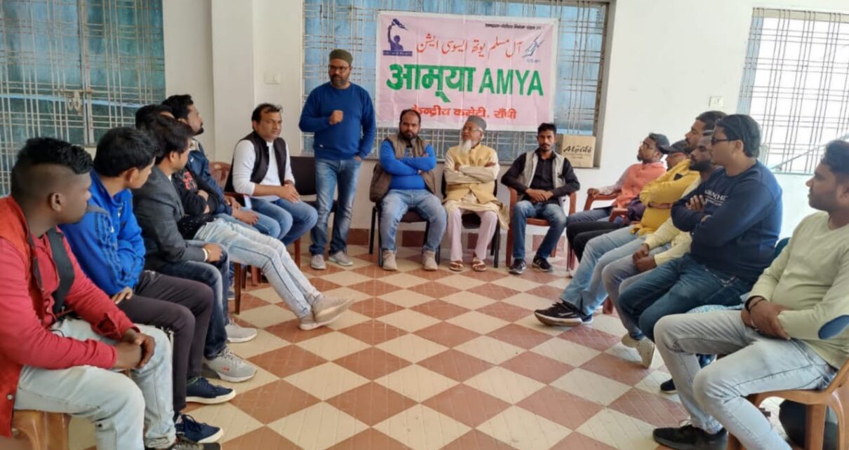 कांके, राची,झारखण्ड | फरवरी | 12, 2023 :: झारखंड के जवलंत सवालों को लेकर आमया संगठन की बैठक कांके मिल्लत काॅलोनी में केन्द्रीय उपाध्यक्ष मो फुरकान की अध्यक्षता में हुई, बैठक का संचालन केन्द्रीय संगठन प्रभारी जियाउद्दीन अंसारी ने किया।
