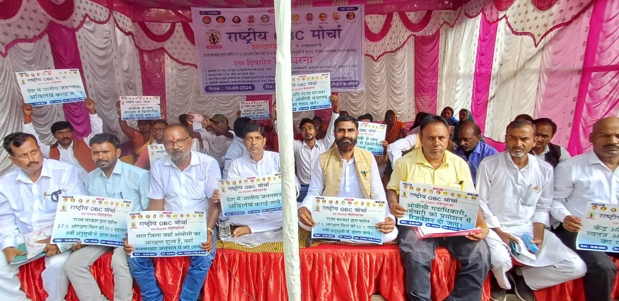 राष्ट्रीय ओबीसी मोर्चा के द्वारा चलाए जा रहा चरणबद्ध आंदोलन के क्रम में राजभवन के समीप ओबीसी का आरक्षण 14% से बढ़कर 50% कर 9वीं अनुसूची में डालने, ओबीसी स्वतंत्र मंत्रालय का गठन करने, जातीय जनगणना करवाने, राज्य के सात जिले में जहां आरक्षण शून्य कर दिया गया है वहां आरक्षण देने सहित सात सूत्री मांगों को लेकर एक दिवसीय महा धरना दिया।