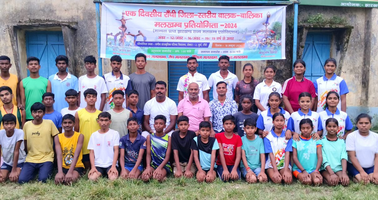 राँची जिला मलखंब एसोसिएशन के तत्वावधान में आयोजित एक दिवसीय सब जुनियर, जुनियर एवं सीनियर बालक – बालिका मलखंब प्रतियोगिता आज बंगीय सांस्कृतिक परिषद उच्च विद्यालय,सेक्टर-2, धुर्वा ,राँची के प्रांगण में संपन्न हुआ। प्रतियोगिता का उद्घाटन रांची जिला मलखंब संघ के सचिव आशुतोष द्विवेदी ने खिलाड़ियों से परिचय प्राप्त कर किया। जबकि मंच का संचालन संघ के वरीय प्रशिक्षक विवेक कुमार ने किया । समापन समारोह के मुख्य अतिथि झारखंड मलखंब अकादमी राँची के निदेशक डाॅo अजय झा ने पुरस्कार वितरण किया। अंत में धन्यवाद ज्ञापन संघ के सहायक प्रशिक्षक संजय कुमार ने किया।