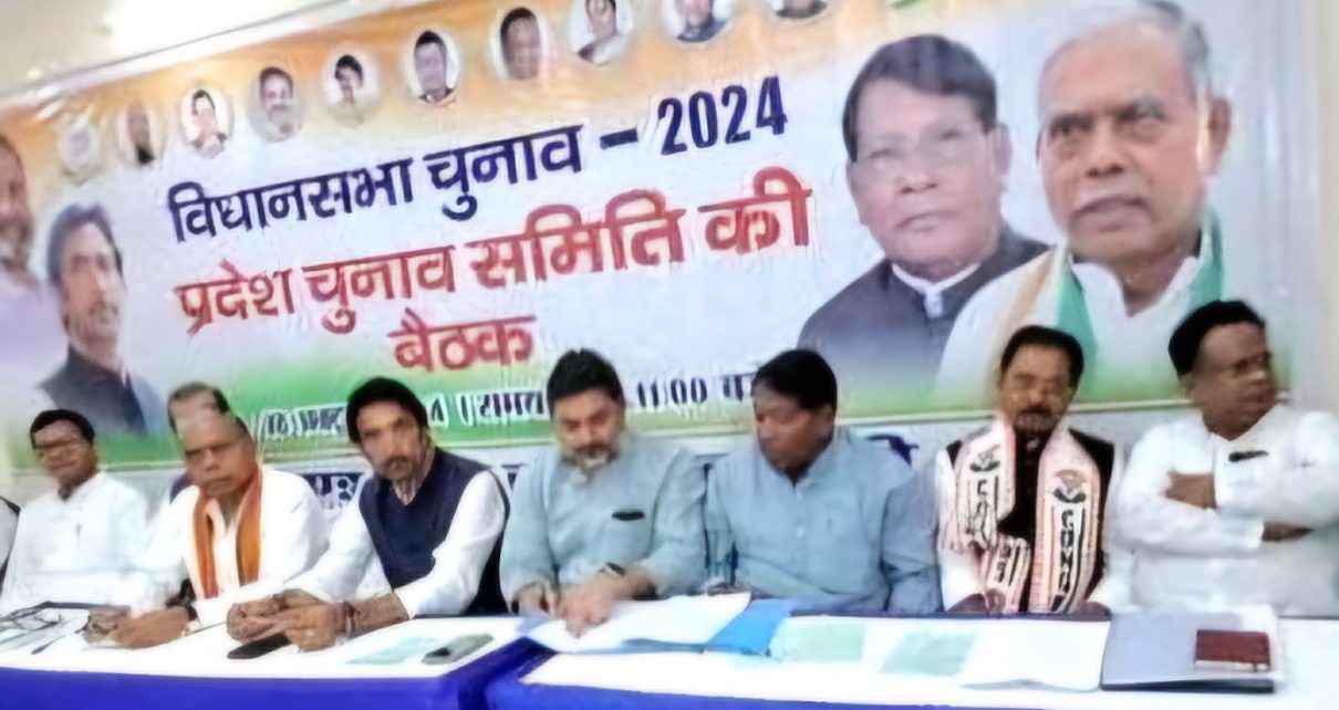 विधानसभा चुनाव के मद्देनज़र प्रदेश कांग्रेस चुनाव समिति की बैठक कांग्रेस मुख्यालय में प्रदेश कांग्रेस अध्यक्ष सह चुनाव समिति के चेयरमैन केशव महतो कमलेश की अध्यक्षता में संपन्न हुई।बैठक में मुख्य अतिथि के रूप मे प्रदेश कांग्रेस प्रभारी गुलाम अहमद मीर उपस्थित थे।