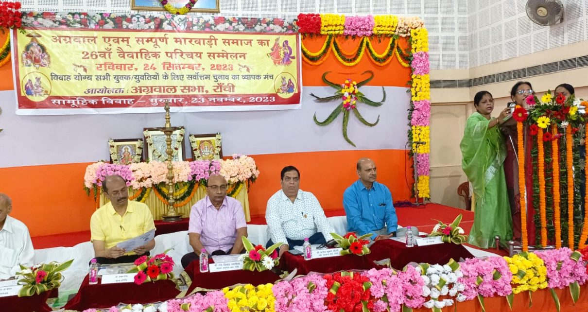 अग्रवाल सभा रांची द्वारा आयोजित वृहद् मारवाड़ी समाज एवं संपूर्ण अग्रवालों का 26वां सामूहिक वैवाहिक परिचय सम्मेलन महाराजा श्री अग्रसेन भवन मे हुआ।