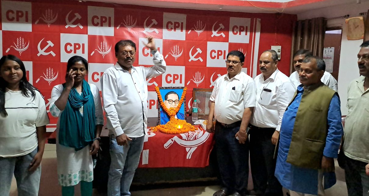 भारतीय कम्युनिस्ट पार्टी के राज्य कार्यालय में बाबा भीमराव अंबेडकर के 132 वी जयंती की अवसर पर बाबा साहेब के चित्र पर माल्यार्पण कर शुरुआत की गयी। जिसकी अध्यक्षता राज्य परिषद के सदस्य सह रांची उच्च न्यायालय के अधिवक्ता राजेंद्र रविदास ने किया. कार्यक्रम में मुख्य रूप से भाकपा के प्रदेश सचिव में महेंद्र पाठक जिला सचिव अजय कुमार सिंह, हाई कोर्ट के अधिवक्ता सहगल टोपो, वरीय अधिवक्ता योगेंद्र प्रसाद, इम्तियाज़ खान ने संबोधित किया, सर्वप्रथम उनके चित्र पर पुष्पांजलि अर्पित कर दीप जलाकर कार्यक्रम की शुरुआत की गई। उपस्थित लोगों को संबोधित करते हुए भारतीय कम्युनिस्ट पार्टी के प्रदेश सचिव महेंद्र पाठक ने कहा कि आज बाबा भीमराव अंबेडकर के द्वारा बनाए गए संविधान को देश की गदी पर बैठी हुई फासिस्ट सरकार संविधान को बदलने के लिए बेताब है। देश में संविधान, लोकतंत्र दोनों को बचाने के लिए आम जनता को सड़कों पर आना चाहिए, । आर एस एस एवं केंद्र की सरकार संविधान को हटाकर मनुस्मृति को लागू करना चाहती है। भारतीय कम्युनिस्ट पार्टी उसे पूरा नहीं होने देगी,सीपीआई शोषित दलित पीड़ित लोगों की आवाज है। लेकिन देश की गद्दी पर बैठी हुई मोदी की सरकार देश के संविधान को मिटाना चाहती है। मोदी सरकार के हाथों में देश के संविधान एवं लोकतंत्र सुरक्षित नहीं है,। हम सब मिलकर बाबा साहब को दिया हुआ महा ग्रंथ को बचाने के लिए सड़कों पर उतरे और आने वाले चुनाव में देश की गदी पर बैठी हुई हिटलर शाही सरकार को सत्ता से बाहर करें। अजय कुमार सिंह ने संबोधित करते हुए कहा देश के समता मूलक समाज की स्थापना में और शोषित पीड़ितों की अधिकार दिलाने में बाबा साहेब आंबेडकर के योगदान को नही भुलाया जा सकता है, संविधान और लोकतंत्र की रक्षा हम सब की दायित्व है।इस सभा में मुख्य रूप से आरती देवी,अनामिका रानी, किरण कुमारी, इम्तियाज अहमद,सुरेंद्र दीक्षित, मनोज ठाकुर, कृष्ण कुमार वर्मा, नीरज सिंह, मनोज सिंह, योगेंद्र प्रसाद अभिनव राज राजद के राजेश यादव सहित कई लोग शामिल हुए