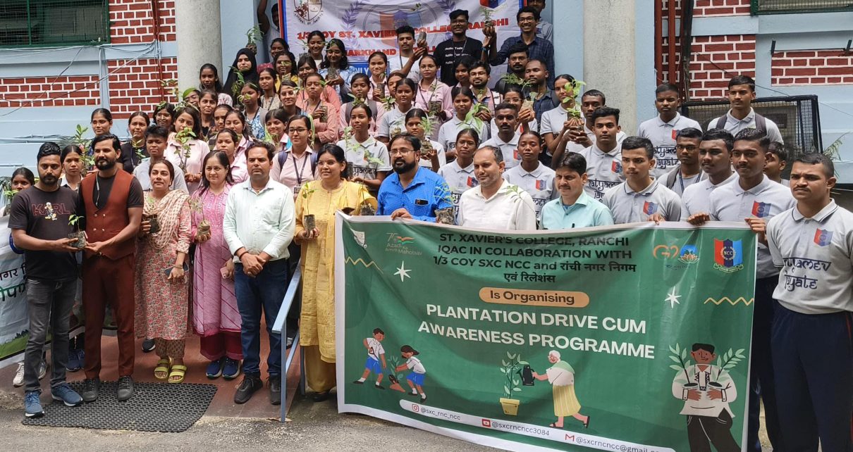 आईक्यूएसी के तहत, सेंट जेवियर्स कॉलेज, रांची के 1/3 कंपनी एनसीसी ने, रांची नगर निगम और रिलेशंस के सहयोग से, 24 जुलाई 2024 को पौधारोपण और पौधा वितरण पर एक जागरूकता सत्र का आयोजन किया। इसमें एनसीसी कैडेट और अन्य सहित लगभग 120 लोग शामिल हुए।