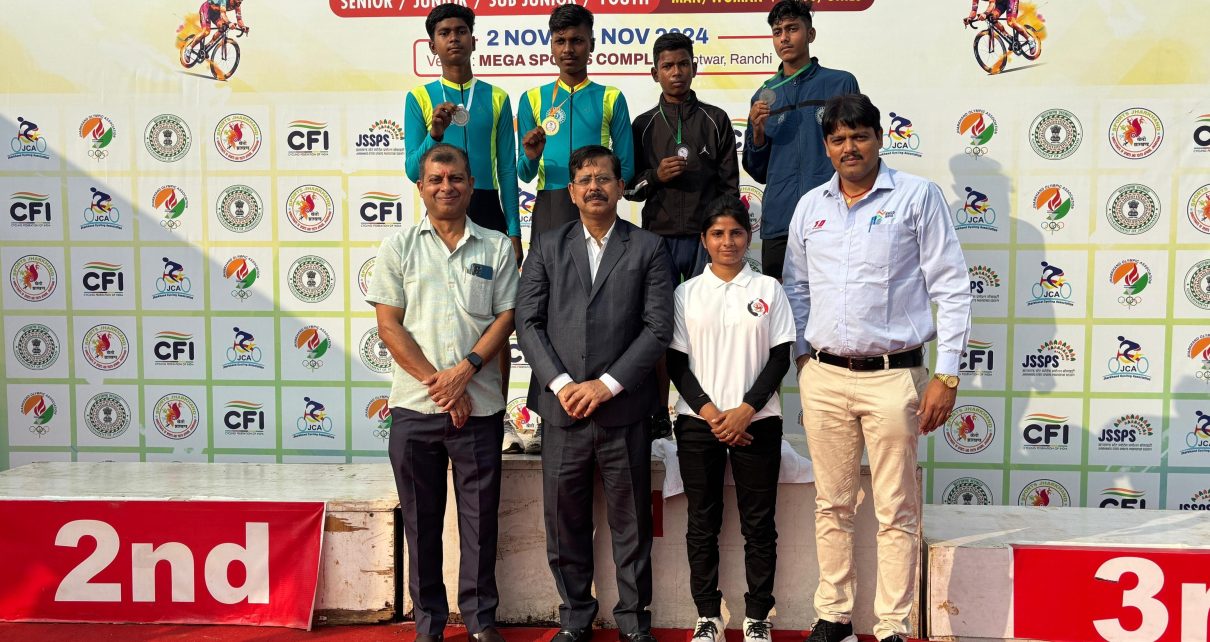 11वीं झारखंड राज्य स्तरीय सीनियर, जूनियर, सब जूनियर, यूथ बालक/ बालिका/ महिला पुरुष रोड साइकिलिंग प्रतियोगिता 2024 का आयोजन मेगा स्पोर्ट्स कंपलेक्स खेलगांव होटवार रांची में आयोजित की गई है। जिसका आज समापन किया गया समापन में मुख्य अतिथि के रूप में शशि प्रकाश झा विशेष सचिव, भू राजस्व विभाग झारखंड सरकार विशिष्ट अतिथि झारखंड ओलंपिक संघ के महासचिव डॉ. मधुकांत पाठक, झारखंड एथलेटिक्स संघ के सचिव एस.के पांडे, ने संयुक्त रूप से विजेता खिलाड़ियों को पदक पहनकर सम्मानित किया । तथा उक्त प्रतियोगिता में रांची 93 अंकों के साथ बना विजेता व 33 अंक के साथ वेस्ट सिंहभूम बना उपविजेता। झारखंड के विभिन्न जिलों से 220 बालक बालिका महिला पुरुष खिलाड़ियों ने भाग लिया। आयोजन को सफल बनाने में झारखंड साइकिलिंग संघ के महासचिव श्री शैलेंद्र कुमार पाठक, उपाध्यक्ष सुरजीत कुमार, झारखंड साइकलिंग संघ के सदस्य रितेश झा,कोषाध्यक्ष रणवीर सिंह, जितेंद्र महतो, दिलीप कुमार गुप्ता ,राजकुमार मेहता, चंद्र बहादुर सिंह, दीपक हेंब्रम, प्रवीण कुमार, साइकिलिंग फेडरेशन ऑफ़ इंडिया के आब्जर्वर के रूप में शीर्ष, तकनीकी पदाधिकारी के रूप में प्रोन्नति रानी दास, राम कुमार भट, प्रथम शर्मा, धनंजय महतो, सुमित्रो बोरनाल आदि।