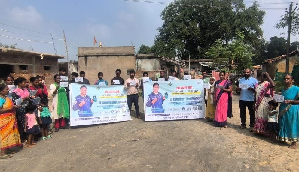 रांची में 13 और 20 नवंबर को होने वाले मतदान के मद्देनजर, सभी उपस्थित मतदाताओं को शपथ दिलाई गई, ताकि वे अपने मताधिकार का सही और जिम्मेदारी से प्रयोग कर सकें। इस अभियान का मुख्य उद्देश्य मतदाताओं को चुनावी प्रक्रिया में अधिक सक्रिय भागीदारी के लिए प्रेरित करना और उनके मतदान अधिकारों के प्रति जागरूकता फैलाना था।