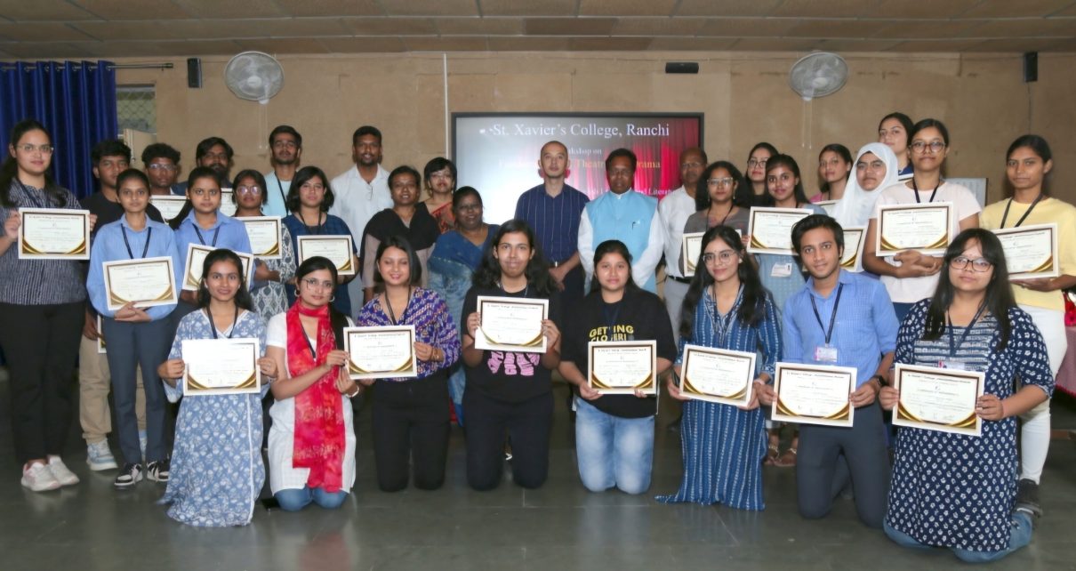 संत जेवियर्स कॉलेज राँची में अंग्रेजी (भाषा व साहित्य) विभाग, पत्रकारिकता विभाग व आईक्यूएसी द्वारा “रंगमंच व नाटक” विषय आधारित तीन दिवसीय कार्यशाला का आयोजन किया गया| इस दौरान विद्यार्थियों को रंगमंच व नाटकों के मूल सिद्धांतों की विवेचना करते हुए इनकी बारीकियों से अवगत कराया।