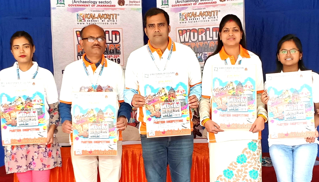 रांची, झारखण्ड | नवम्बर | 17, 2019 :: कला सांस्कृतिक निदेशालय (पुरातत्वा प्रक्षेत्र ), झारखण्ड सरकार के द्वारा कलाकृति स्कूल ऑफ़ आर्ट्स के सहयोग से विश्व विरासत सप्ताह (19-25 नवम्बर) के अवसर पर दो दिवसीय कार्यक्रम का आयोजन ऑड्रे हाउस रांची में दिनांक 18 एवं 19 नवम्बर को किया जा रहा है | इस अवसर पर आज कलाकृति स्कूल ऑफ़ आर्ट्स प्रांगन में झारखण्ड पुरातत्वा प्रक्षेत्र के क्षेत्रीय उप निदेशक श्री अमिताभ कुमार ने पोस्टर का विमोचन किया एवं इस कार्यक्रम से सम्बंधित जानकारी दी |