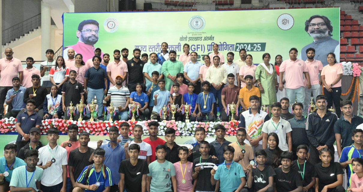 राज्यस्तरीय खेलो झारखंड प्रतियोगिता 2024-25 अंतर्गत आज कुश्ती प्रतियोगिता संपन्न हुई। इस प्रतियोगिता के विजेताओं को आज पुरस्कृत किया गया। अंडर 14 बालिका वर्ग कुश्ती मुकाबले में गुमला विजेता और साहिबगंज उपविजेता बना। देवघर की टीम सेकंड रनरअप बनी। अंडर 14 बालक वर्ग कुश्ती मुकाबले में लातेहार विजेता और लोहरदगा उपविजेता बना। इस मुकाबले में कोडरमा की टीम सेकंड रनरअप बनी। अंडर 17 ग्रीको रोमन मुकाबले में जेएसएसपीएस की टीम विजयी हुई। इस मुकाबले में साहिबगंज उपविजेता और कोडरमा सेकंड रनरअप बना। अंडर 17 बालिका वर्ग कुश्ती मुकाबले में भी जेएसएसपीएस ने बाजी मारते हुए चैंपियन का खिताब अपने नाम किया। मुकाबले में गुमला उपविजेता और पश्चिमी सिंघभूम सेकंड रनरअप रहा। अंडर 17 फ्री स्टाइल कुश्ती मुकाबले में कोडरमा विजेता बना, बोकारो उपविजेता और गोड्डा सेकंड रनरअप बना। अंडर 19 बालिका वर्ग मुकाबले में गुमला की टीम विजेता बनी। इस मुकाबले में जेएसएसपीएस की टीम उपविजेता और लोहरदगा सेकंड रनरअप बनी। अंडर 19 ग्रीको रोमन मुकाबले में जेएसएसपीएस की टीम जीत हासिल करते हुए विजेता बनी। कोडरमा की टीम उपविजेता और गोड्डा की टीम सेकंड रनरअप बनी। अंडर 19 बालक वर्ग फ्री स्टाइल कुश्ती मुकाबले में कोडरमा की टीम विजेता बनी, धनबाद उपविजेता और जेएसएसपीएस की टीम सेकंड रनरअप बनी।